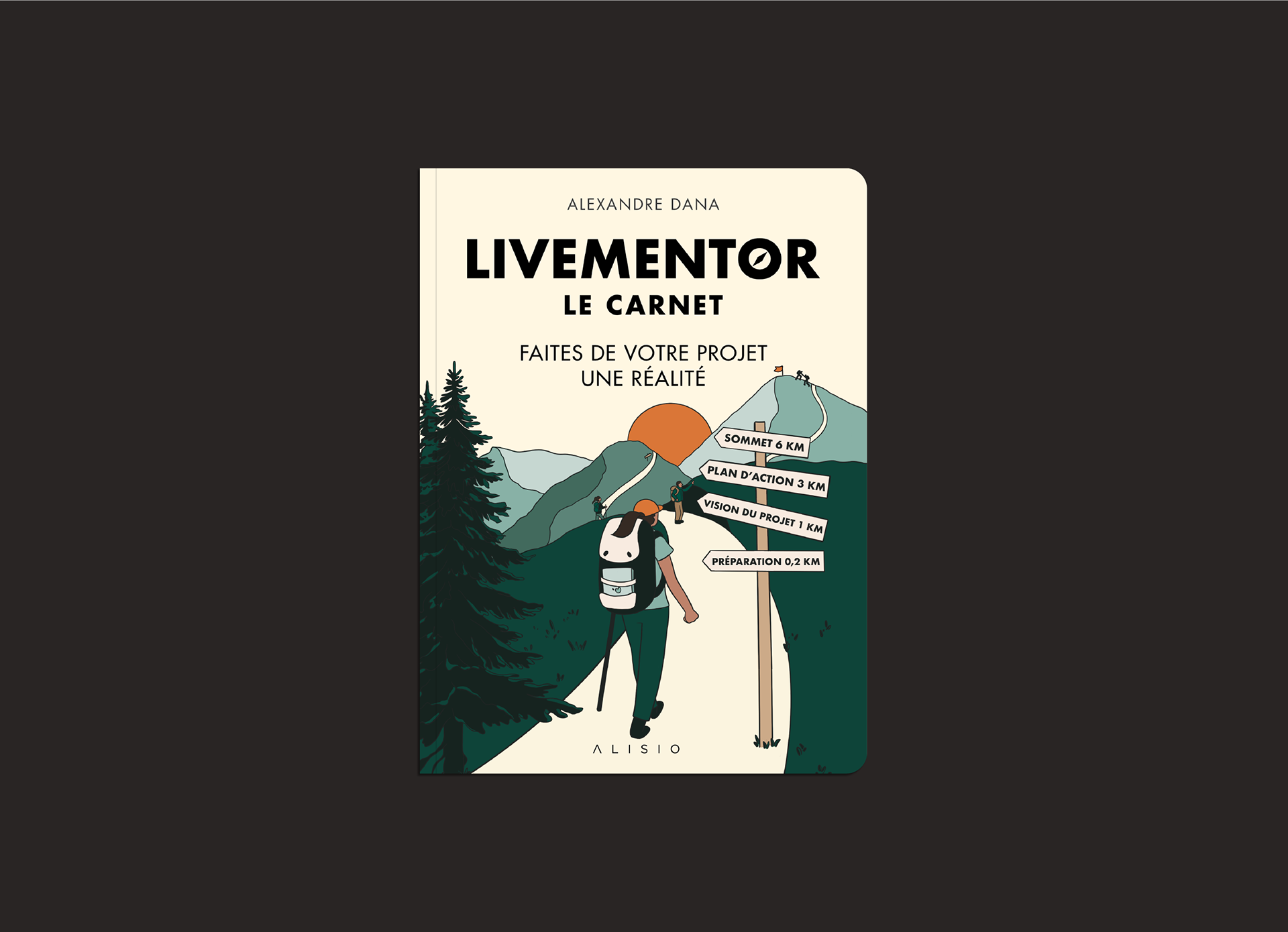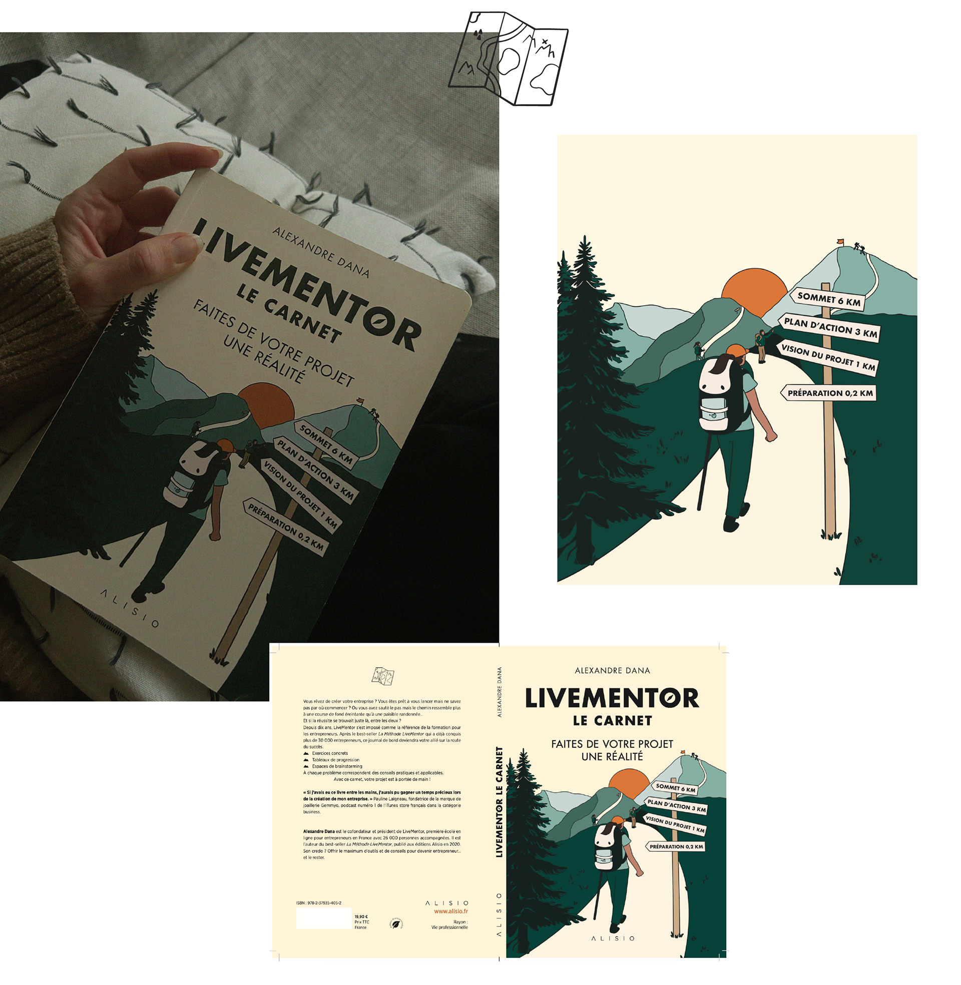 Pour ce projet, Alexandre Dana, cofondateur de LiveMentor, m'a confié la direction artistique de son dernier livre, Le Carnet LiveMentor. Un ouvrage au format de voyage, inspiré du thème de la randonnée et à destination de ceux qui souhaitent se lancer dans l'aventure entrepreneuriale !